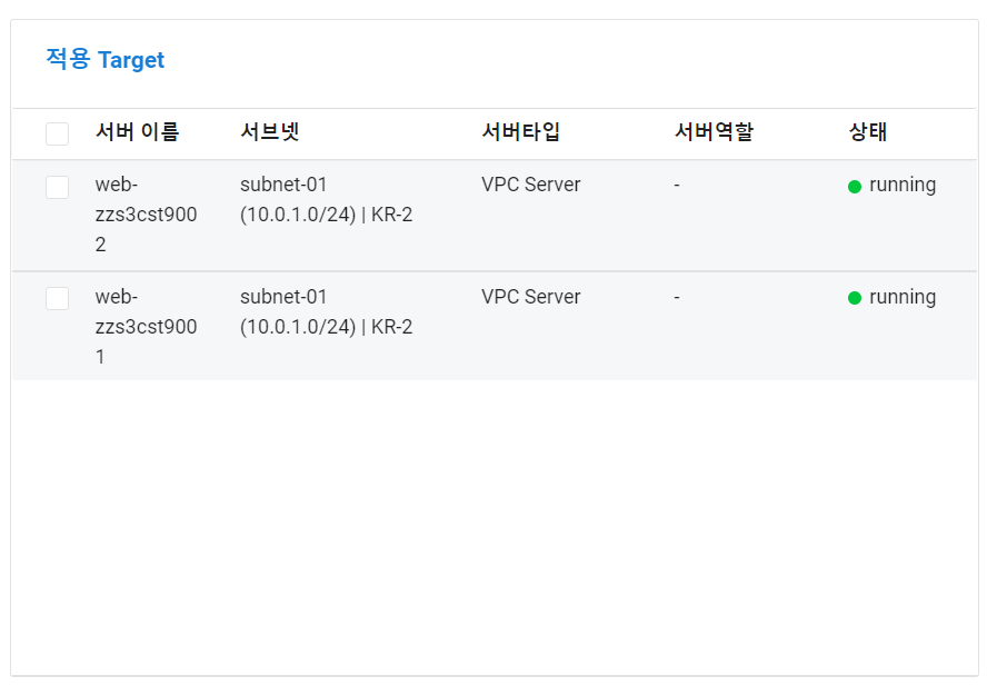 subnet_no_list : LB가 위치하는 서브넷 정보 규정
