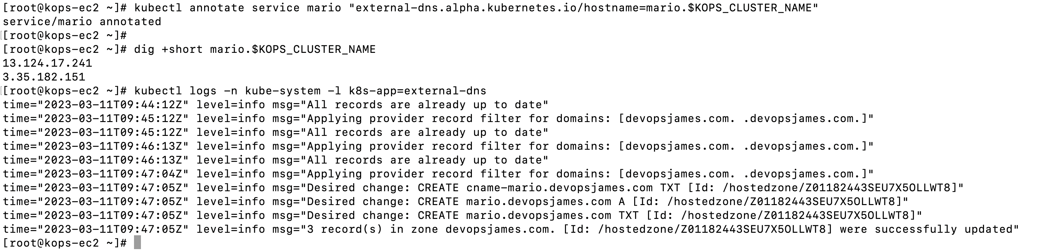 kubectl annotate service mario "external-dns.alpha.kubernetes.io/hostname=mario.$KOPS_CLUSTER_NAME"