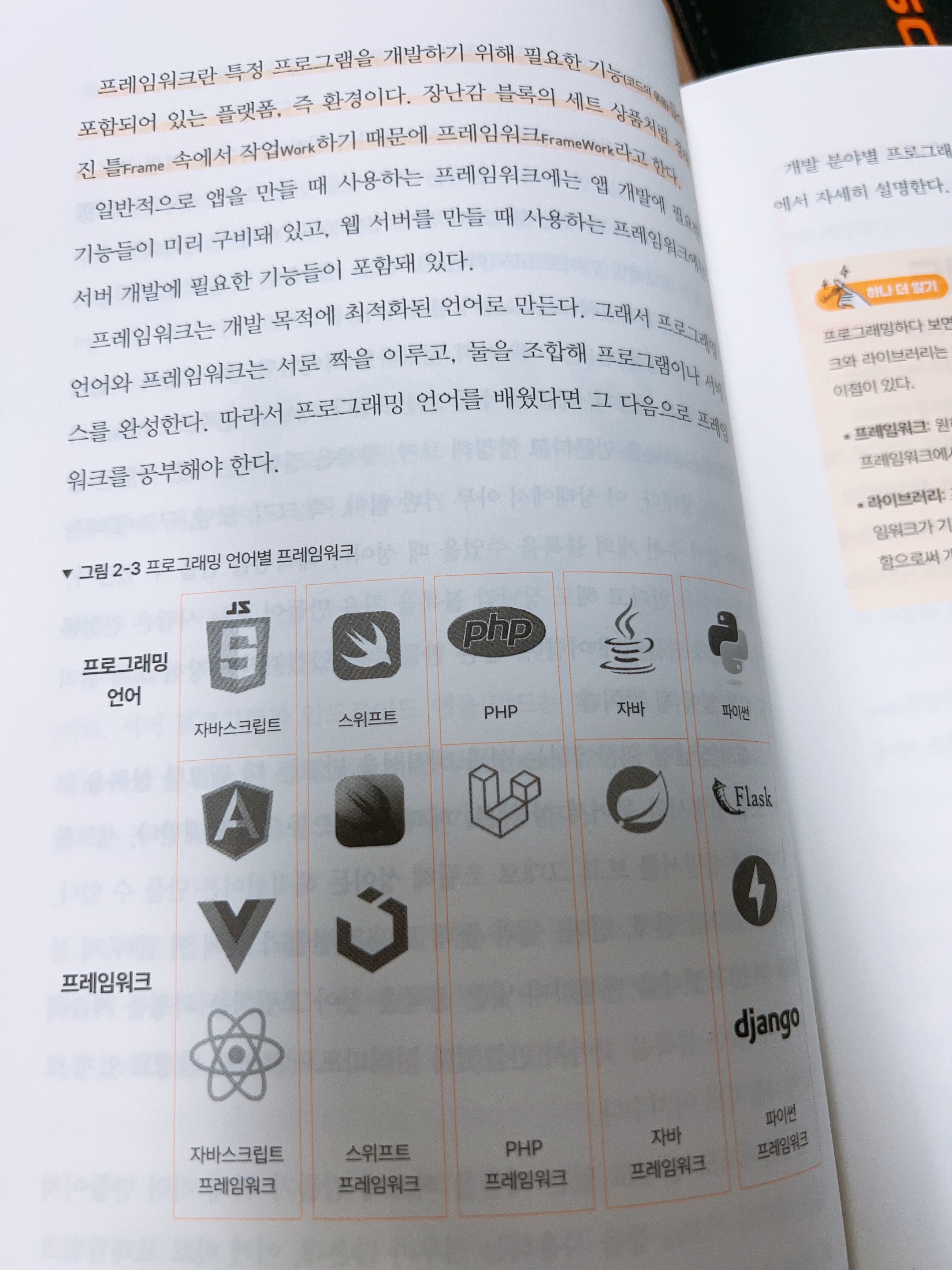 책에서는 언어 선택에 대한 소개와 개발 분야에 대한 소개를 하고 있어요.