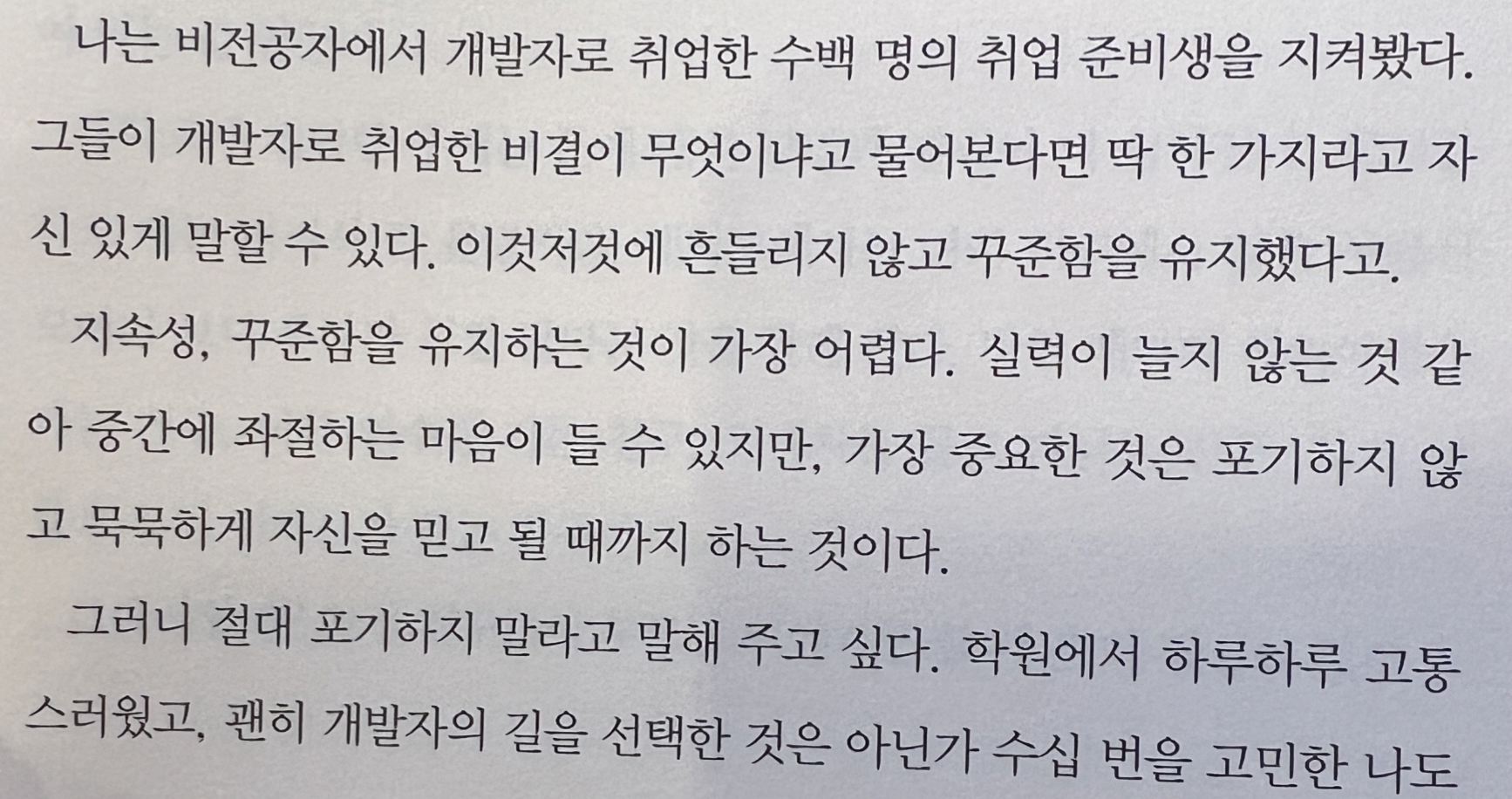 저자가 마지막으로 해주고 싶은 말을 다시 적어본다.