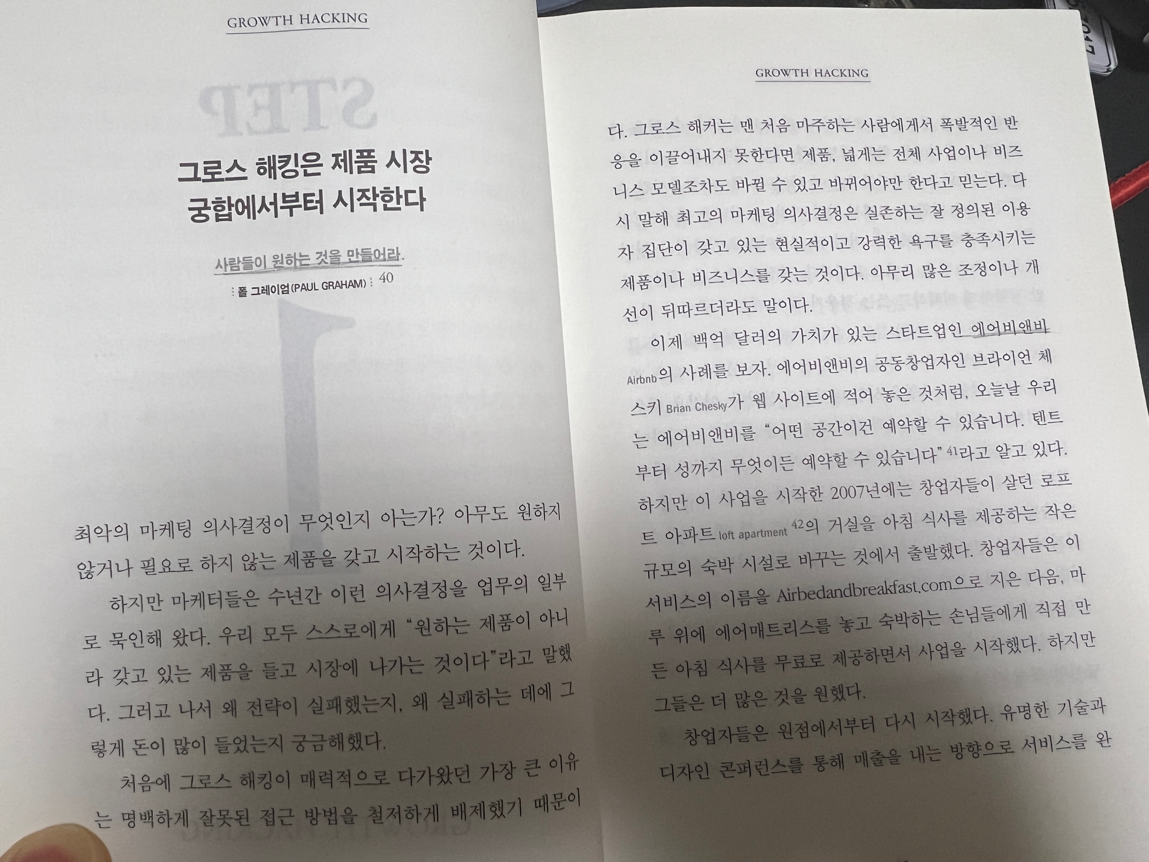 1장에서는 에어비앤비의 사례를 언급했는데, 이들은 처음에 비효율적인 아이디어에서 출발했지만, 이것을 효율적인 아이디어로 지속해서 변화해나갔다. 그 과정에서 맞지 않는 것은 과감하게 버리고, 고객의 타겟을 명확하게 정의한다음 집중적으로 공략했다.