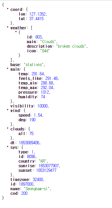 API를 받아왔더니 JSON으로 보기가 매우불편하다.