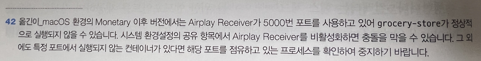 이 책은 mac (x86_64, arm 둘 다 가능)기반으로 파이썬 3.6~3.9 버전을 사용하고 있다. 도커가 설치되어 있어야 한다.