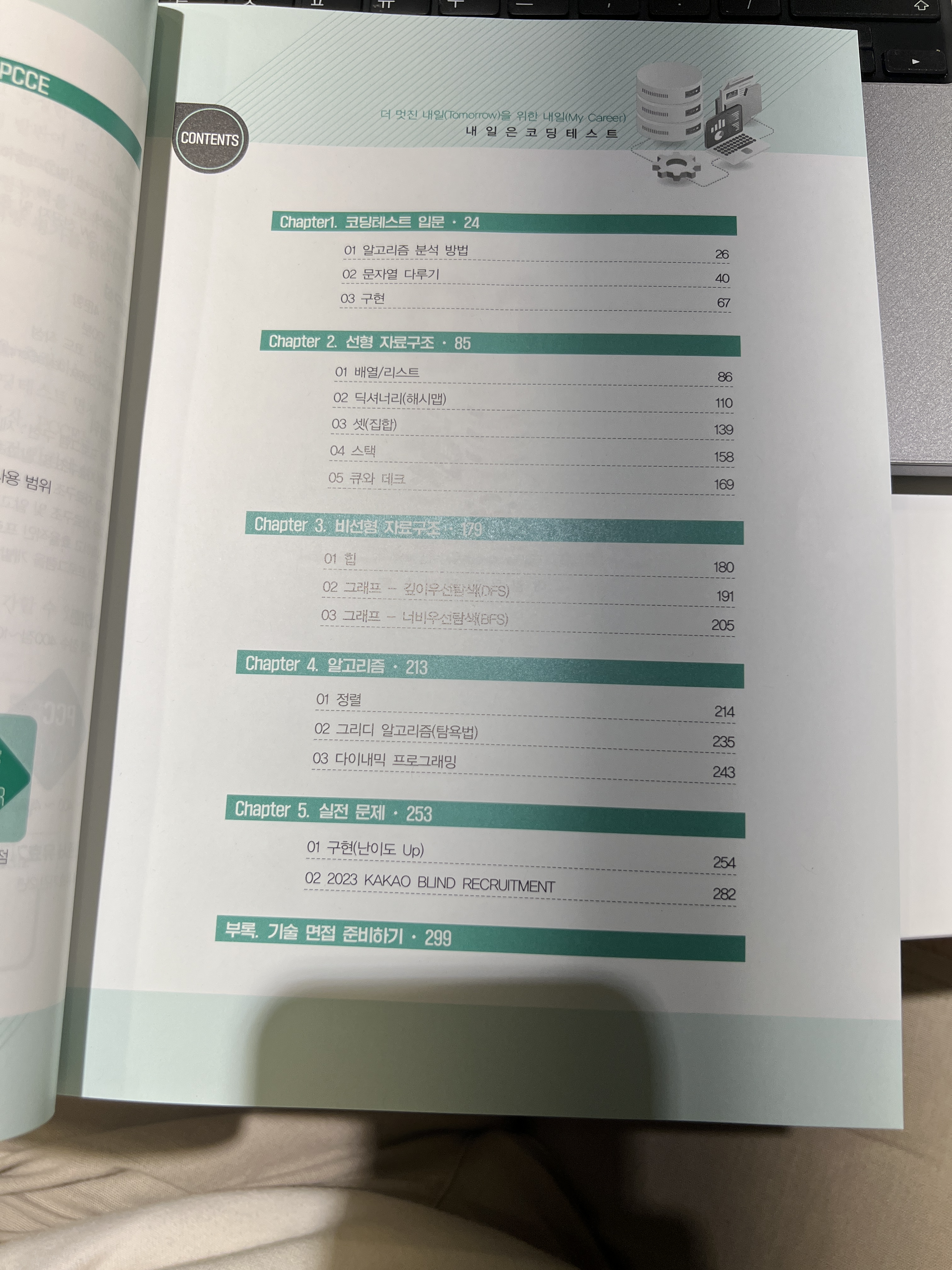음 뭐랄까 최근에 읽었던 코딩테스트 책들은 작은 글씨에 많은 내용이 들어있었다면, 이 책은 김앤북에서 만들어서 그런건지 편집이 옛날에 수능공부할 때 느낌이 좀 났어요 ㅋㅋ 이게 듣는 사람에 따라서 안좋게 평가한다고 볼 수도 있는데 저는 분명 좋은 뜻으로 말하는 겁니다. 깔끔하고 글씨도 크고, 필요한 도표가 있고, 목차가 딱 잘 눈에 띄게 구분되어 있잖아요? 딱 학습서의 목적에 맞는 편집구도입니다. 그래서 읽기가 더 편했습니다.