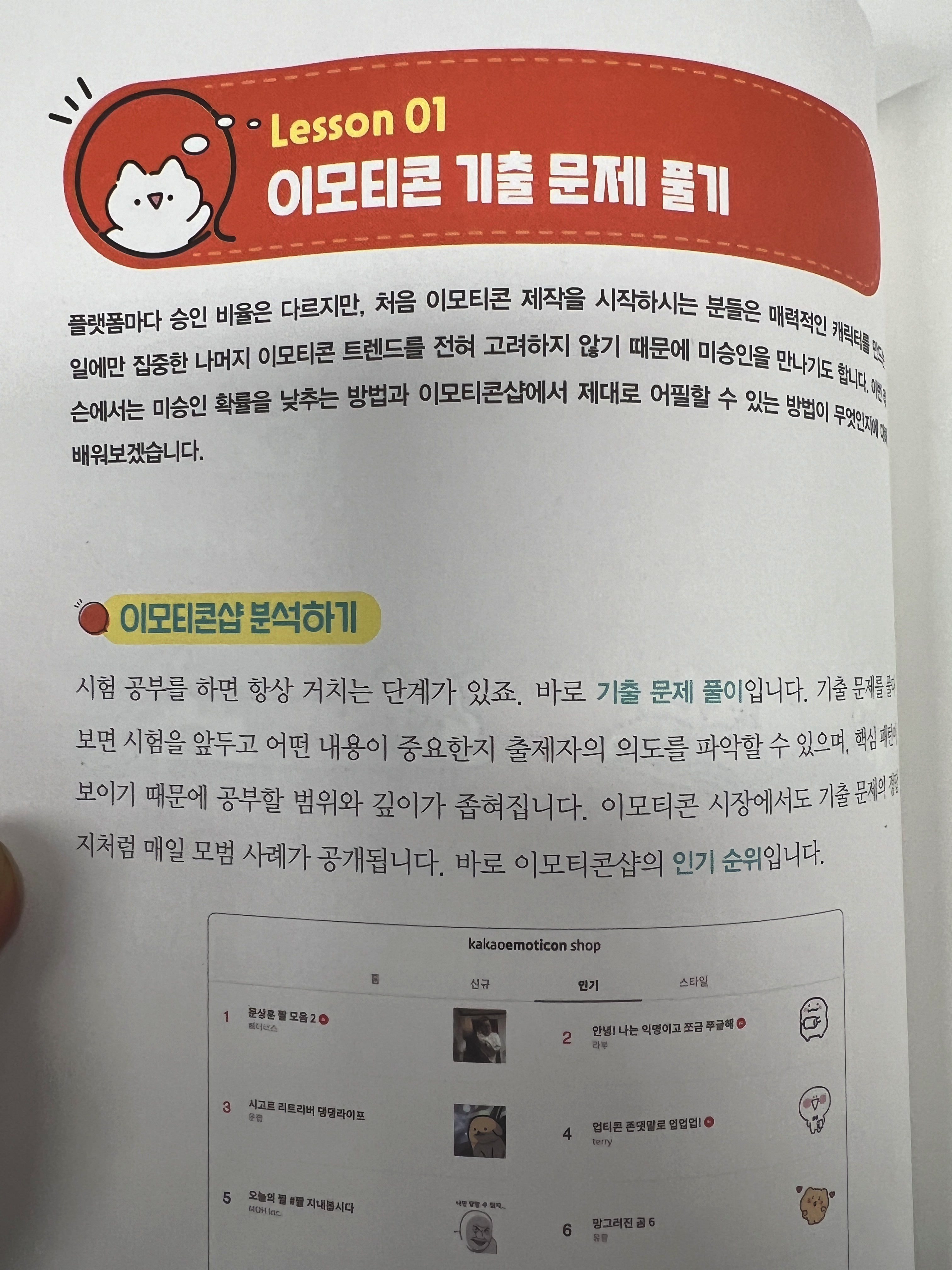 처음에 준비할 것, 이모티콘 그리는 법, 최종 통과까지 필요한 일련의 과정을 모두 다루고 있다는 점에서 한 권으로 충분히 가능한게 장점입니다.