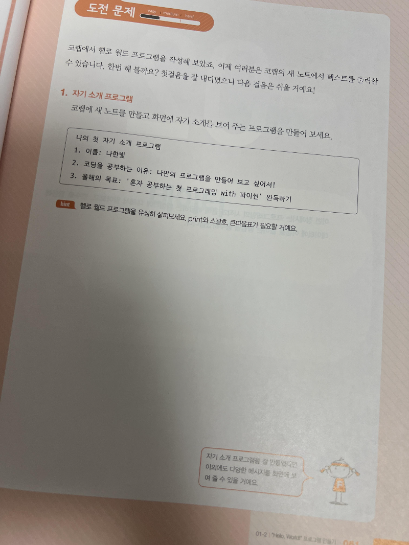 - 도전문제를 통해서 내가 얼마나 잘 학습했는지 확인해 볼 수 있습니다.