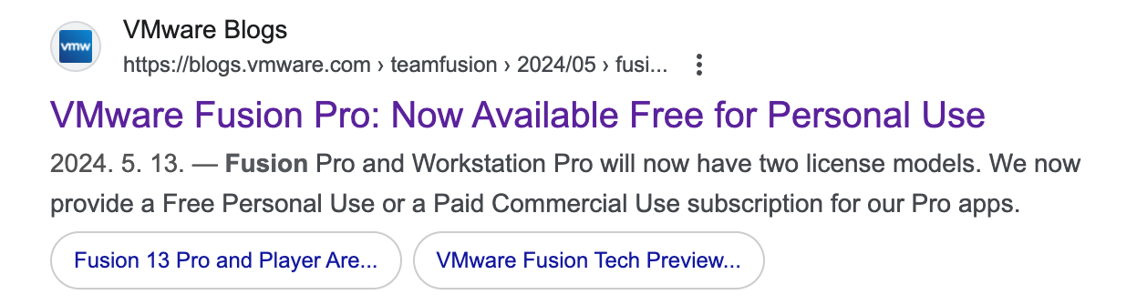https://support.broadcom.com/group/ecx/productdownloads?subfamily=VMware+Fusion 해당 링크로 접속하시면 됩니다.