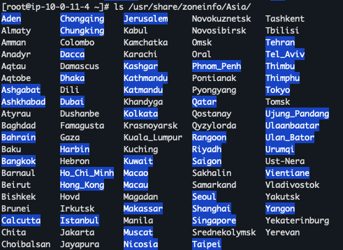 그리고 우리가 설정할 타임존을 확인해야합니다. 이는 리눅스에 이미 내장되어 있습니다.