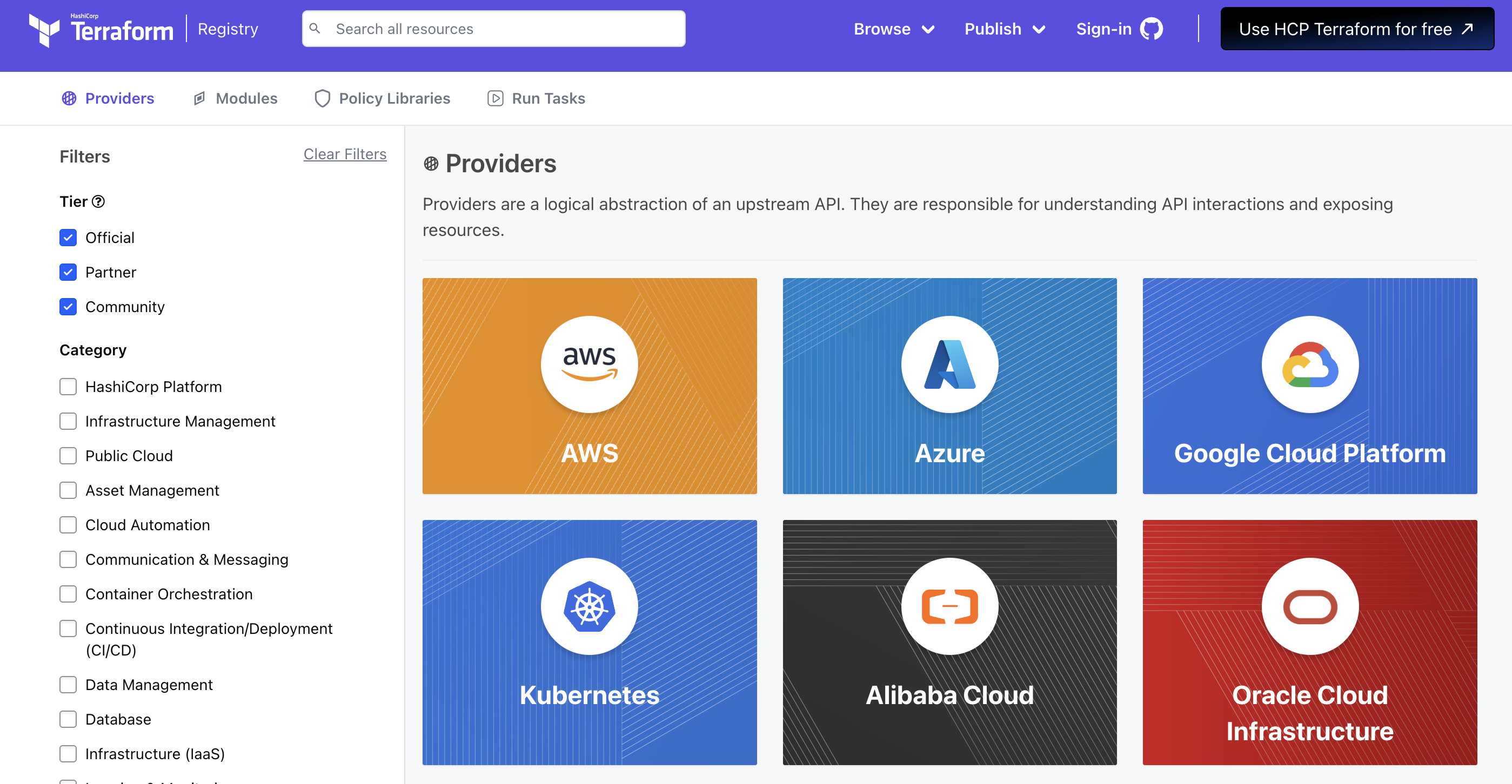 | official | 공식 프로바이더 (하시코프가 직접 관리, 소유) | hashicorp |