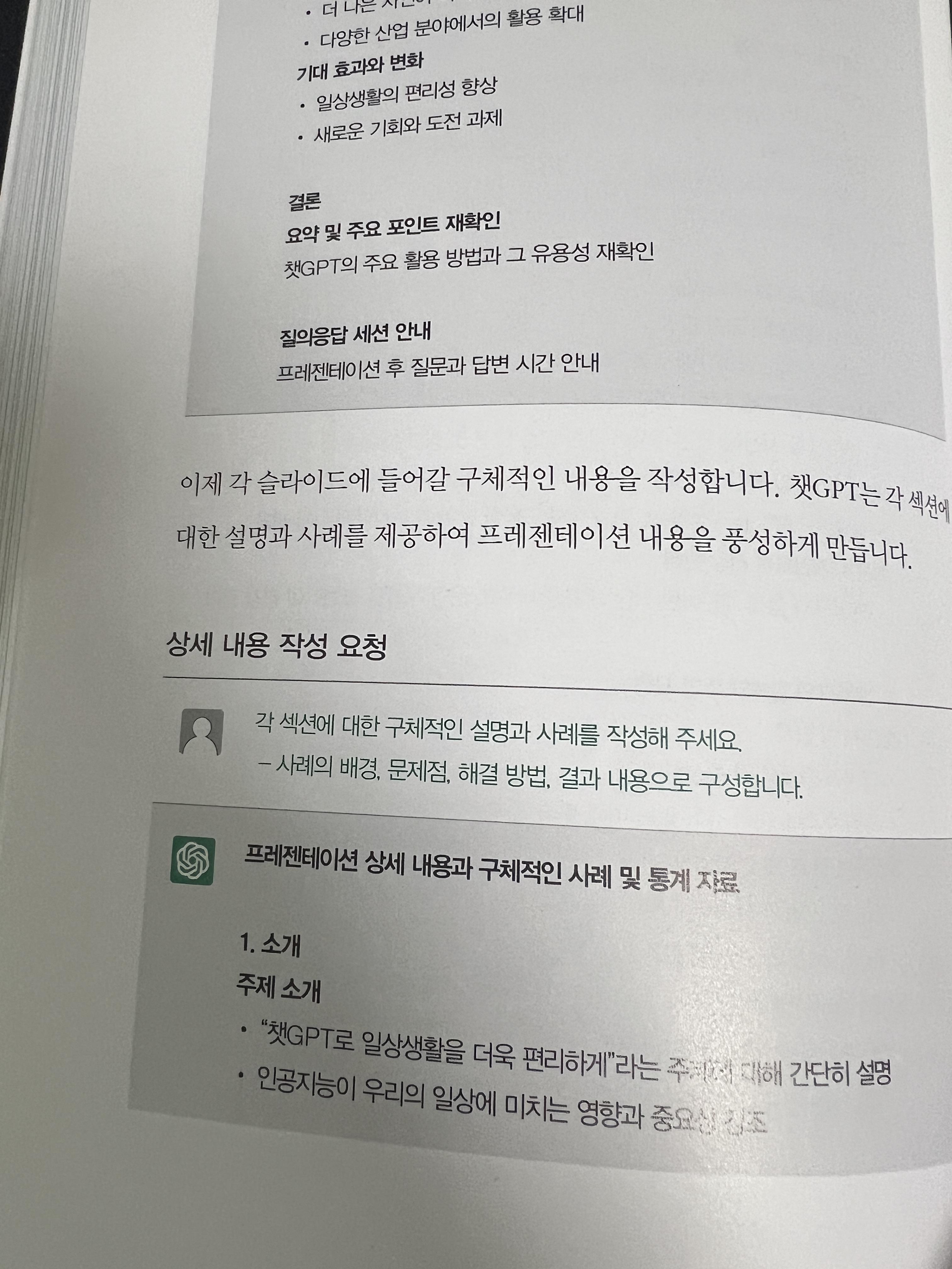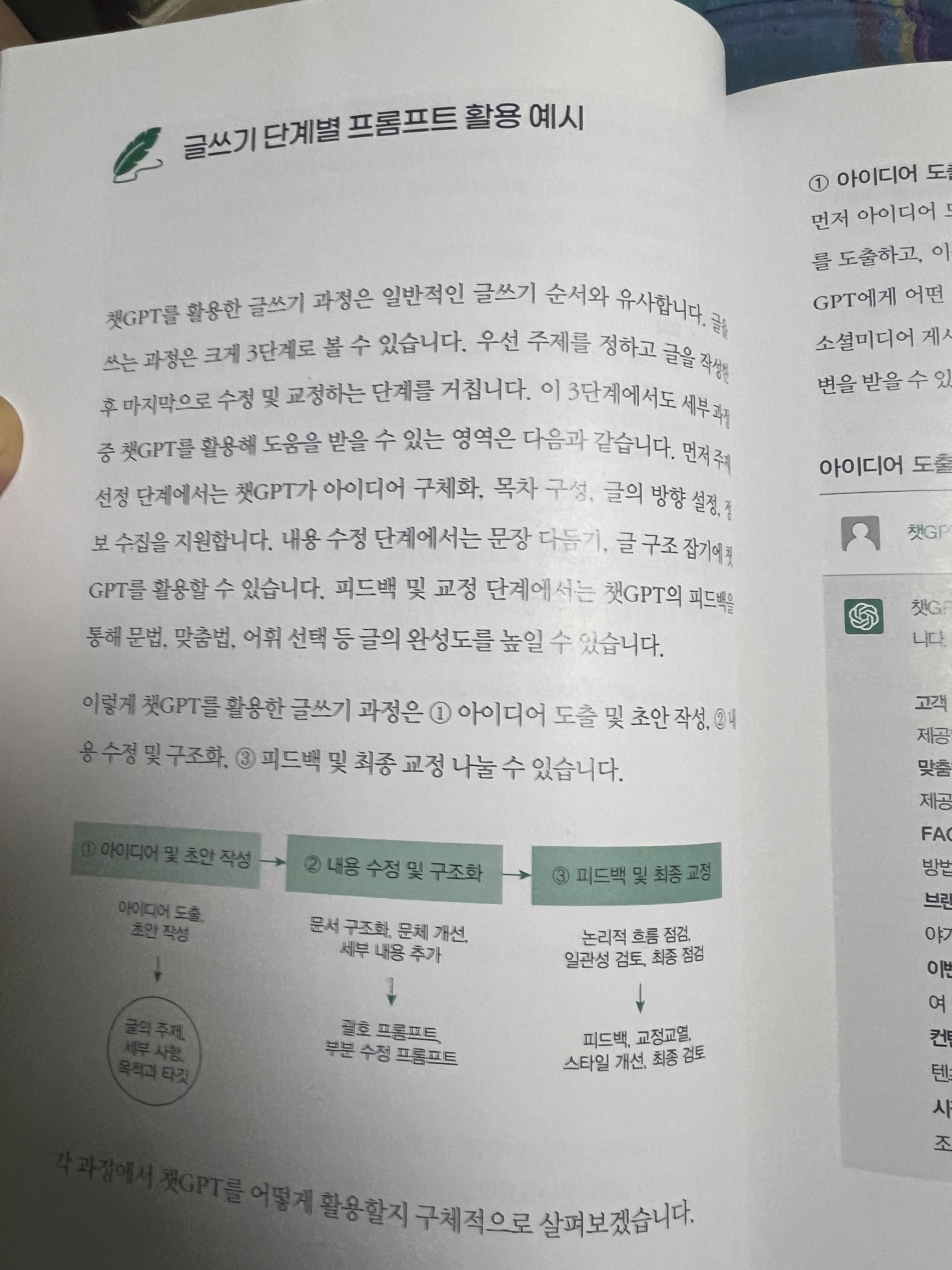 글쓰기 단계별로 필요한 내용에 대해서 ChatGPT에게 어떻게 질문하고 알아가는지를 자세하게 질문과 답변 형식으로 보여줍니다.