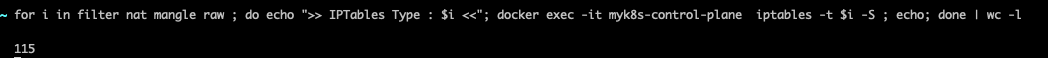 iptables 모드에서는 115개의 iptable rule이 확인됩니다.