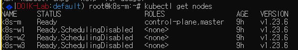 kubectl uncordon k8s-w1 ; kubectl uncordon k8s-w2 ; kubectl uncordon k8s-w3