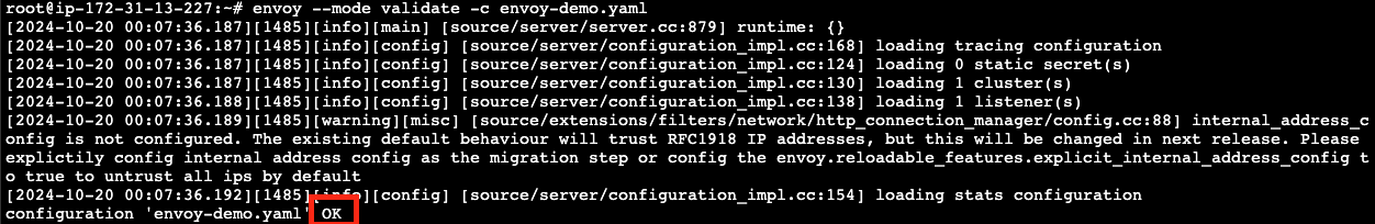 validate 명령은 envoy의 서비스 적용이나 인터넷 연결 혹은 재시작 없이 config의 유효성을 검사한다.