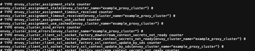 아래 예시에서는 example_proxy_cluster라는 클러스터에서 endpoint로 envoyproxy.io를 프록시 하는 것을 확인할 수 있습니다.