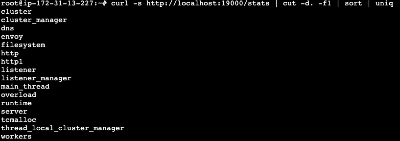 curl -s http://localhost:19000/stats | cut -d. -f1 | sort | uniq