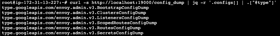l -s http://localhost:19000/config_dump | jq -r '.configs[] | .["@type"]'