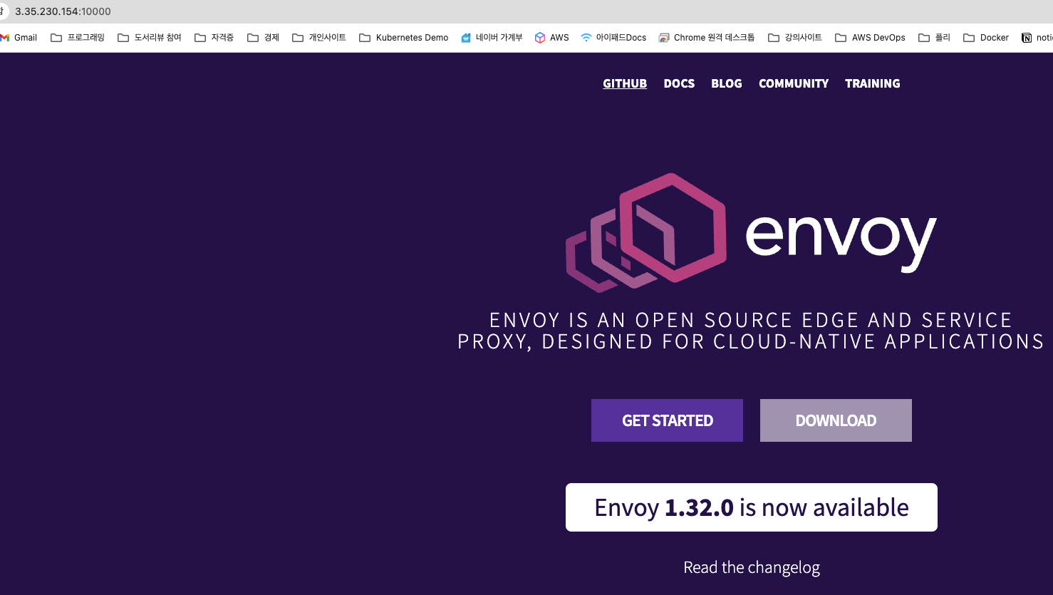 기존 config에서 envoy listener로 10000번 포트를 할당했기 때문에 해당 포트를 호출하면 envoy 홈이 등장한다.