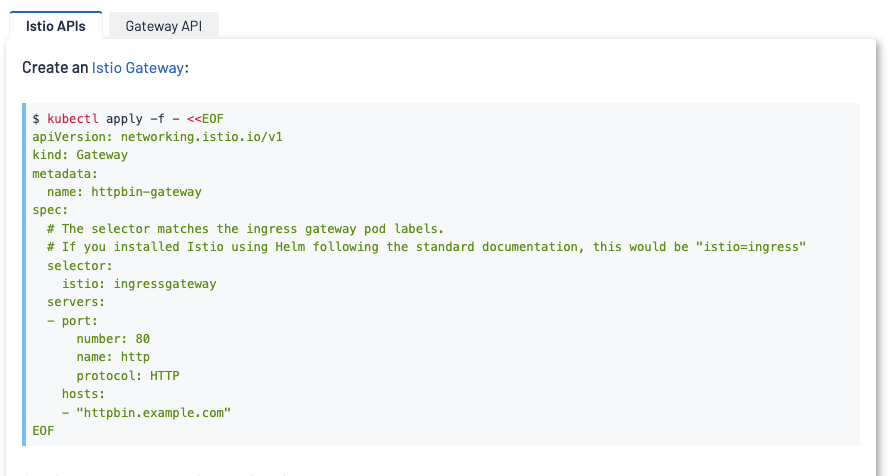Istio의 공식문서에는 다음과 같이 2개의 gateway yaml을 모두 제공하고 있습니다.