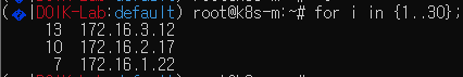 myclient라는 파드를 생성하고, 해당 pod에서 mycluster에 접근을 시도하면 적절하게 분산접속이 가능한지 테스트할 수 있습니다. 저는 아래와 같은 결과 값을 획득하였습니다.