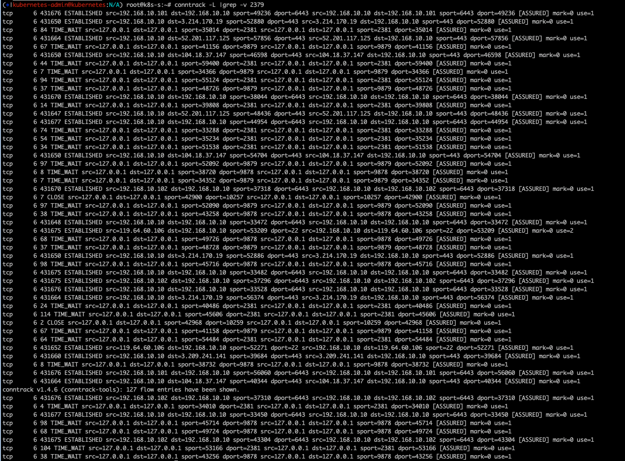 2379는 etcd와 정기적으로 통신하는 포트이므로 해당 포트는 제외하고 조회해본다.