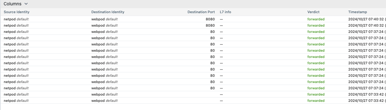Hubble CLI에서도 이와 관련된 내용을 그대로 조회할 수 있다.