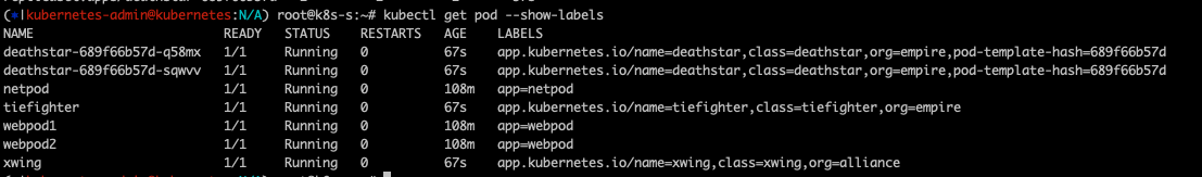 파드의 라벨을 통해서 보안 정책을 적용해 보자. 'org=empire' (tiefighter) 라벨이 부착된 파드만 통신을 허용한다.