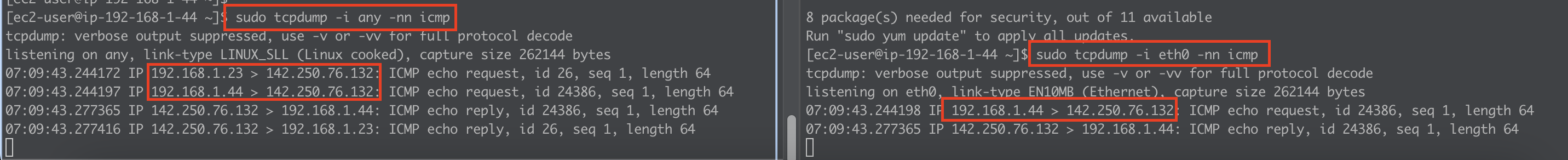 sudo tcpdump -i eth0 -nn icmp
