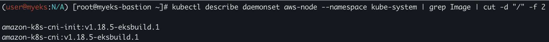 kubectl describe daemonset aws-node --namespace kube-system | grep Image | cut -d "/" -f 2