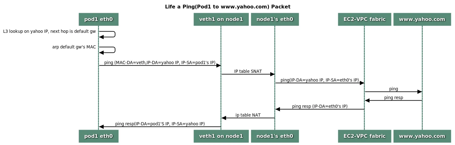 기본적으로는 노드까지 타고 가는 것으로 생각되지만 vpc cni를 사용하면 바로 직접 통신이 가능해진다.