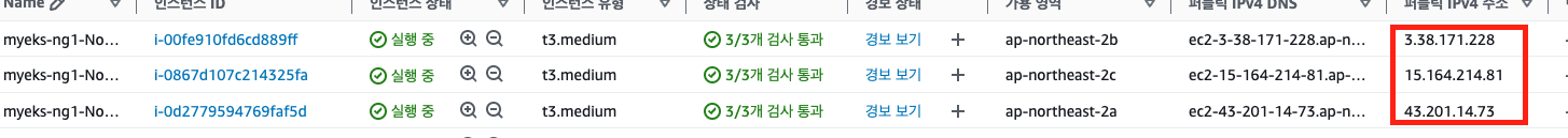 각 노드의 공인 IP로 SNAT 된다는 것을 확인할 수 있다.