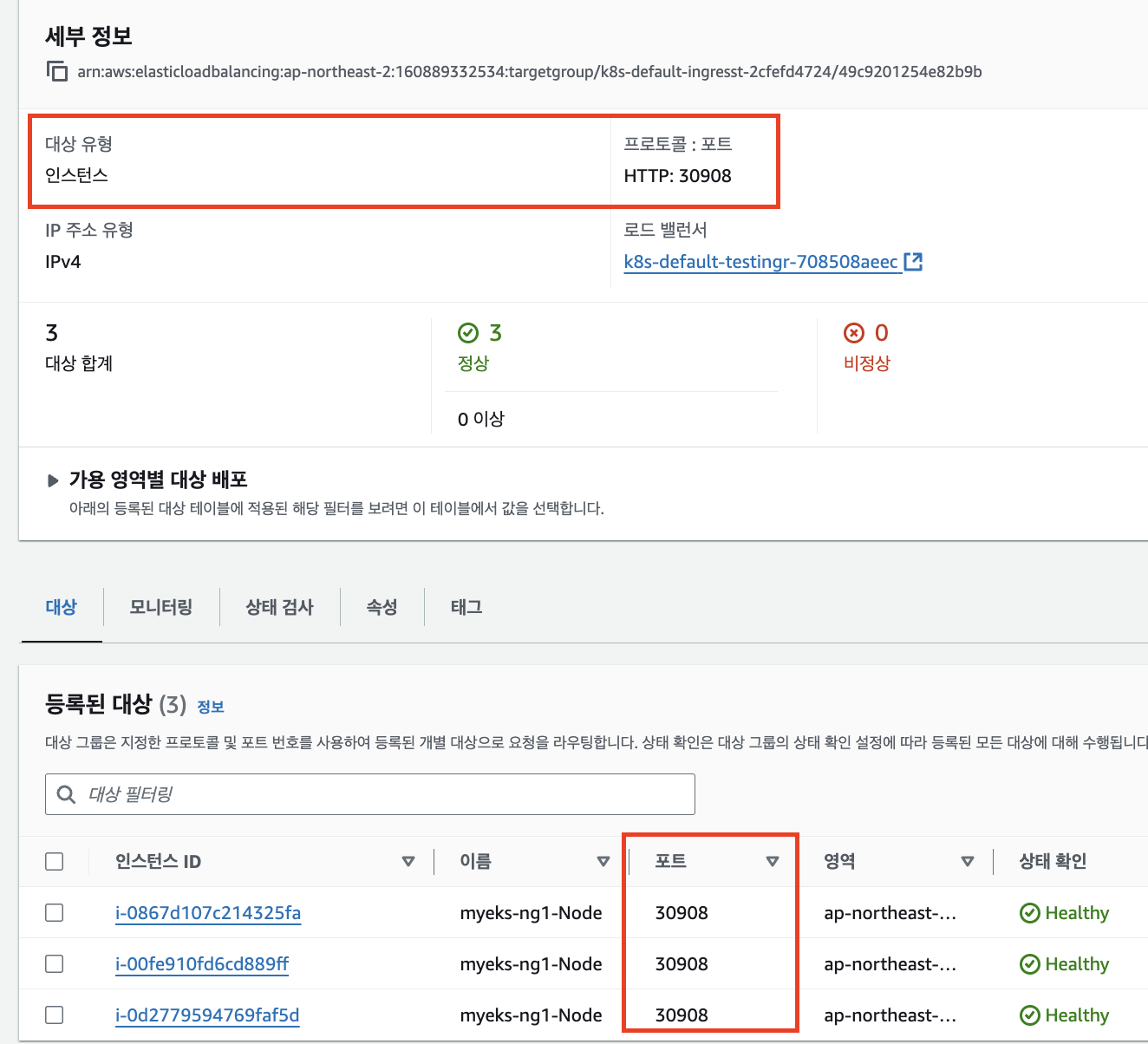 이번에는 target-type을 ip로 변경하고 진행하고 나머지 코드는 모두 동일하다.