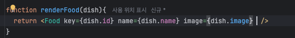 <Food fav="kimchi" /> props이름은 fav, 값은 kimchi를 넣고 Food 컴포넌트에 반영