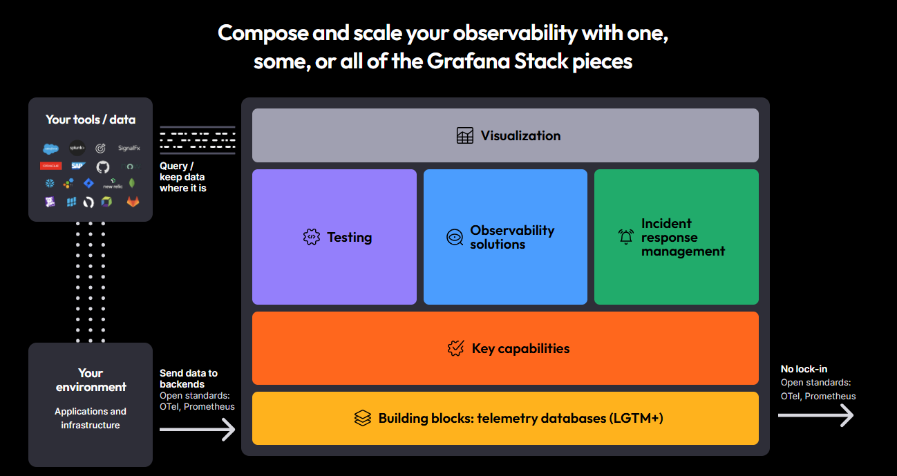데이터 시각화를 위한 오픈소스 툴킷으로 커스터마이징이 매우 편리하고, 지원하는 데이터 소스도 굉장히 다양하고 대시보드 또한 다양합니다. 알림설정까지 가능하여 정말 많이 사랑받고 있는 도구입니다.