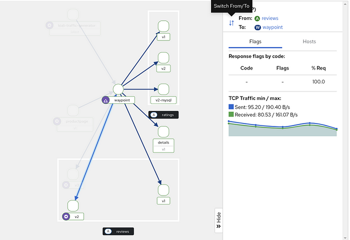 이를 통해서 Ambient를 한 눈에 살펴보기 용이하고, 드롭다운 방식을 통해서 waypoint, ZTunnel을 나눠 살펴볼 수 있습니다. 또한 복잡한 트래픽도 조금 더 간단하게 파악할 수 있게 됩니다.