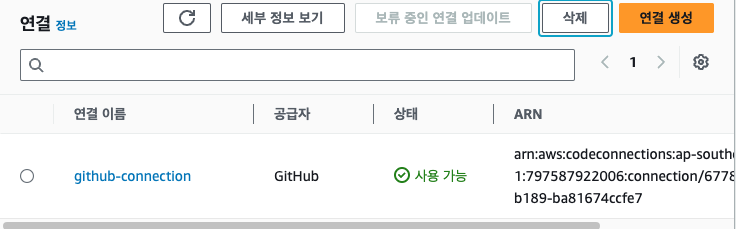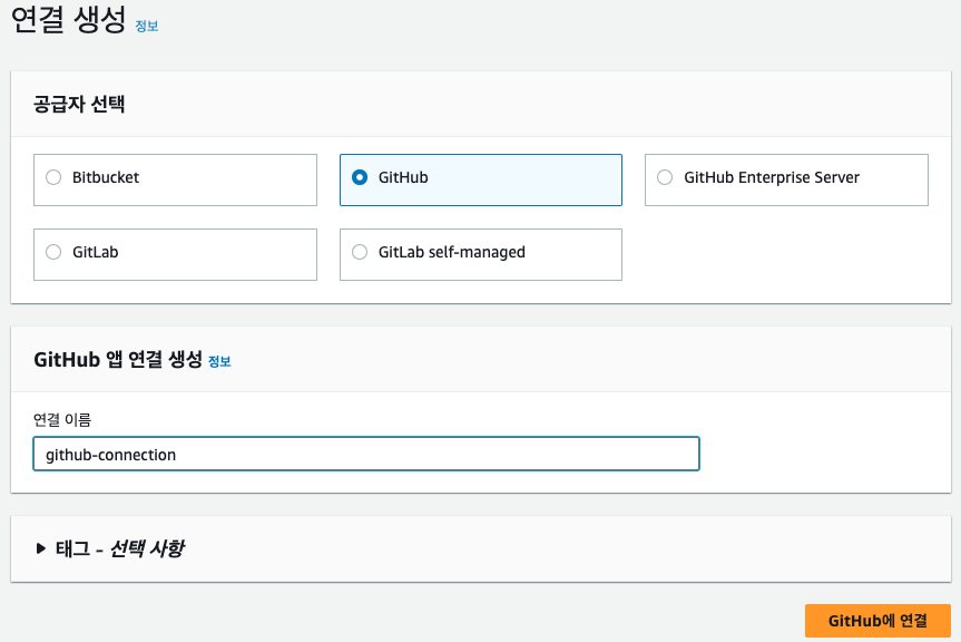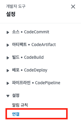 기본적으로 AWS외의 서드파티에 대한 연결은 AWS의 CodeStarConnection이라는 서비스를 이용합니다.
