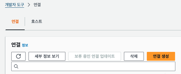 콘솔상에서는 AWS의 코드시리즈 사이드바 중 [설정] > [연결]에서 찾을 수 있습니다.