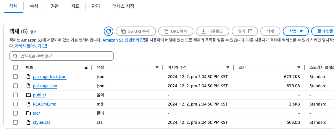 - 내가 사용할 코드를 버킷에 업로드 합니다.