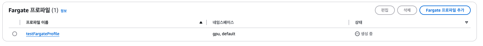 참고로 Fargate 프로파일은 생성과 삭제가 매우 느리며, 한 번에 삭제가 불가능하고 하나씩 삭제해야 합니다.