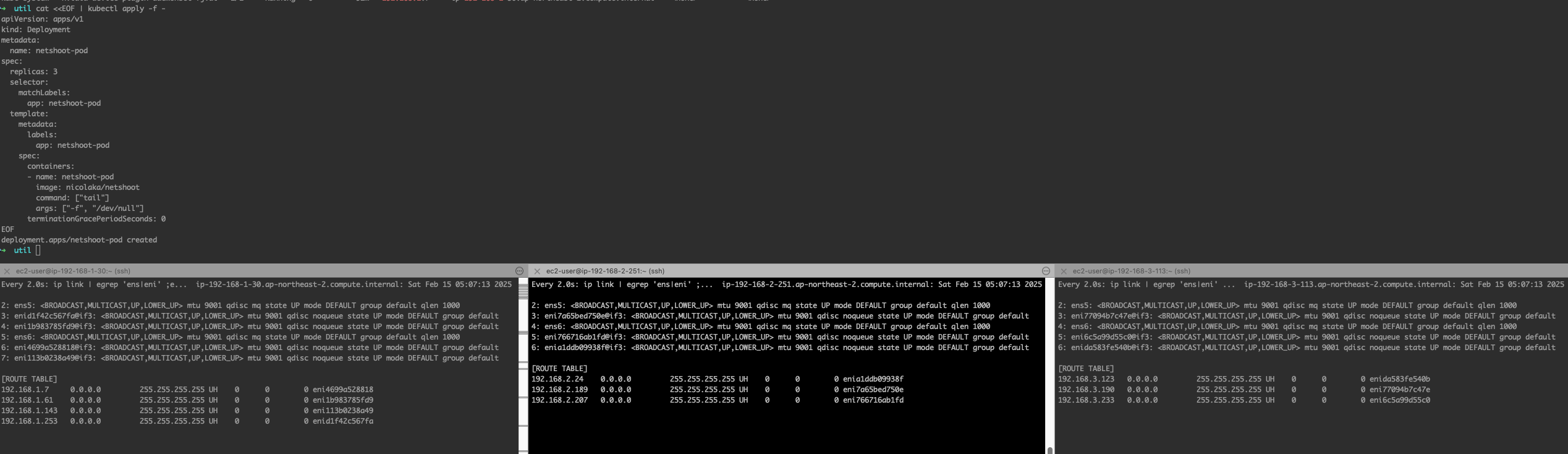 자 이제 테스트용 netshoot pod를 추가하면서 각 IP들이 어떻게 추가되는지 살펴보자.