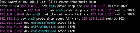 [ec2-user@ip-192-168-3-113 ~]$ ip route show table main
