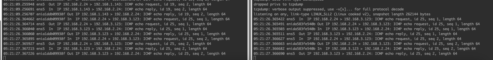 05:21:27.365927 ens5 Out IP 192.168.2.24 > 192.168.3.123: ICMP echo request, id 25, seq 2, length 64