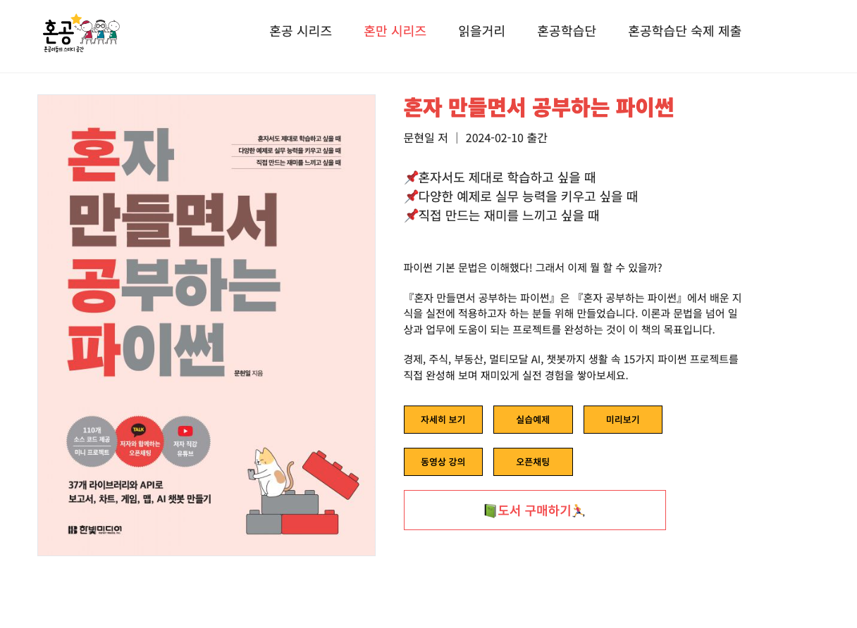 한빛미디어에서 아주 작정하고 시리즈를 만들었는데, 혼자 만들면서 시리즈가 나오면서 아무래도 실습주도형 내용이 나오게 된 것 같다.
