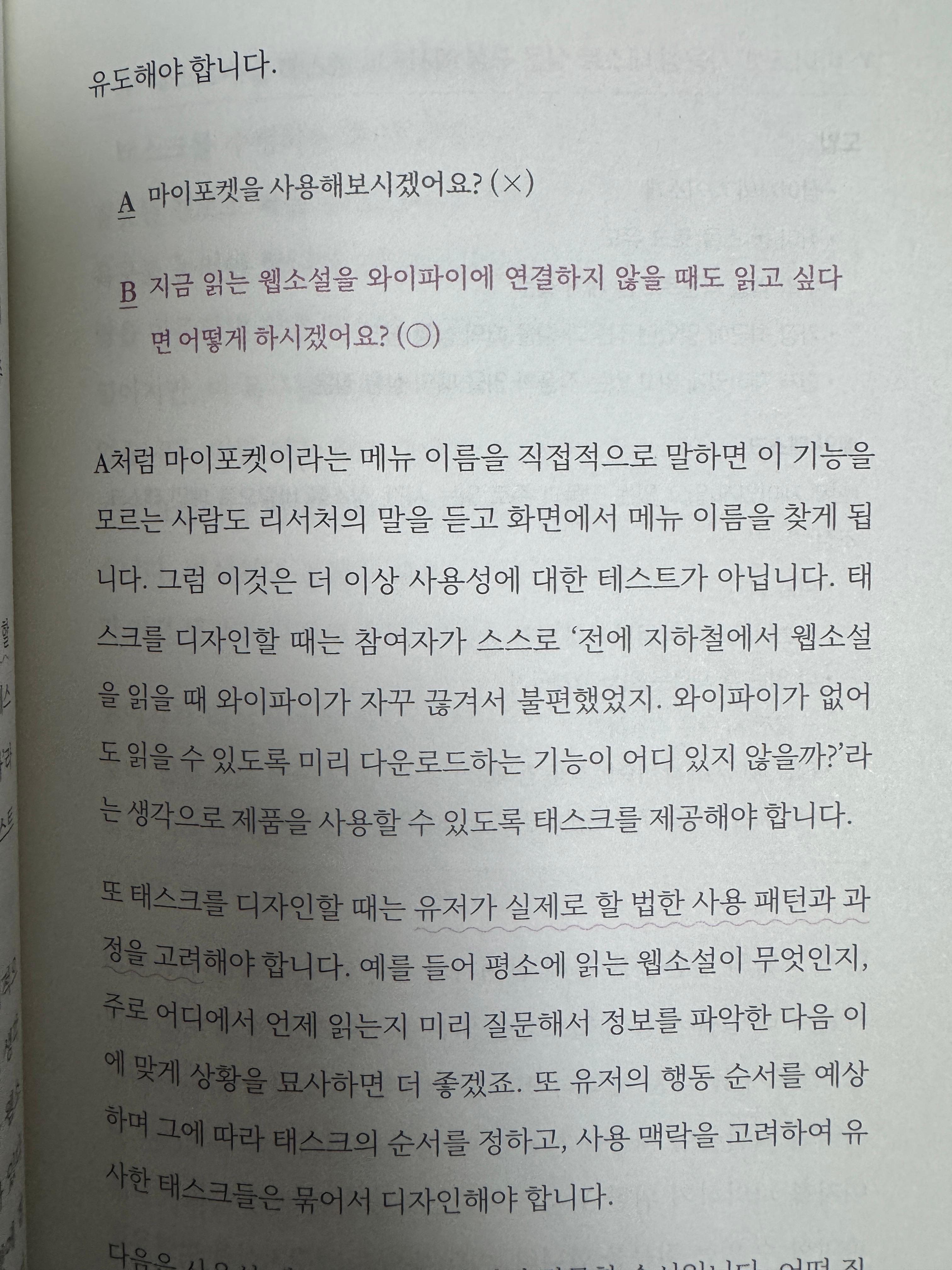 즉 책의 예시처럼 마이포켓을 사용해보시겠어요? 같이 직접적으로 다가가야하는게 아니라 ~~한 경우에 마이포켓을 상대가 찾을 수 있는지, 생각하는지에 대해서 알아보도록해야하는 점도 참 신기하고 좋았다.