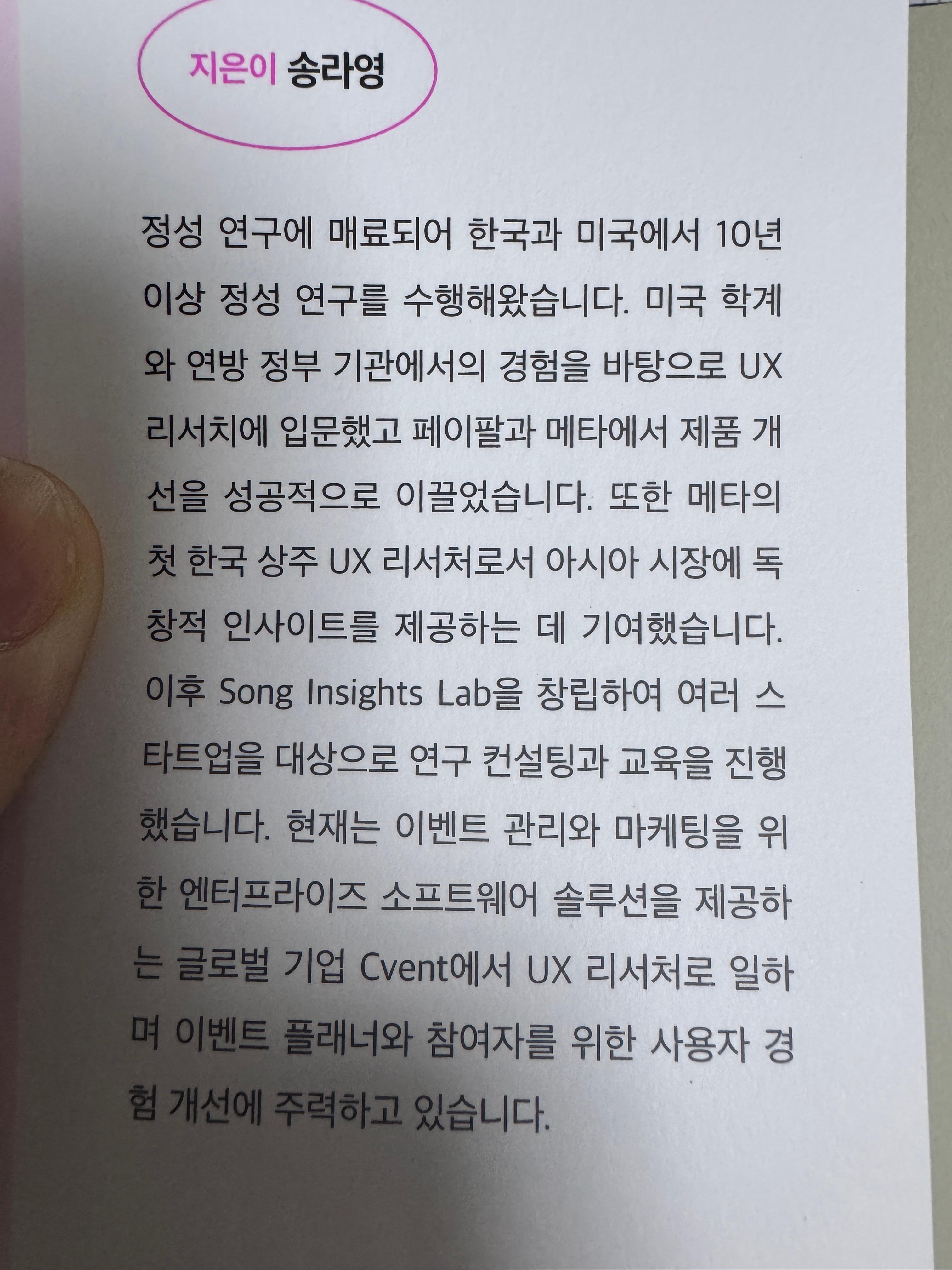 이 책은 UX리서처 송라영님이 지은 책이다.
