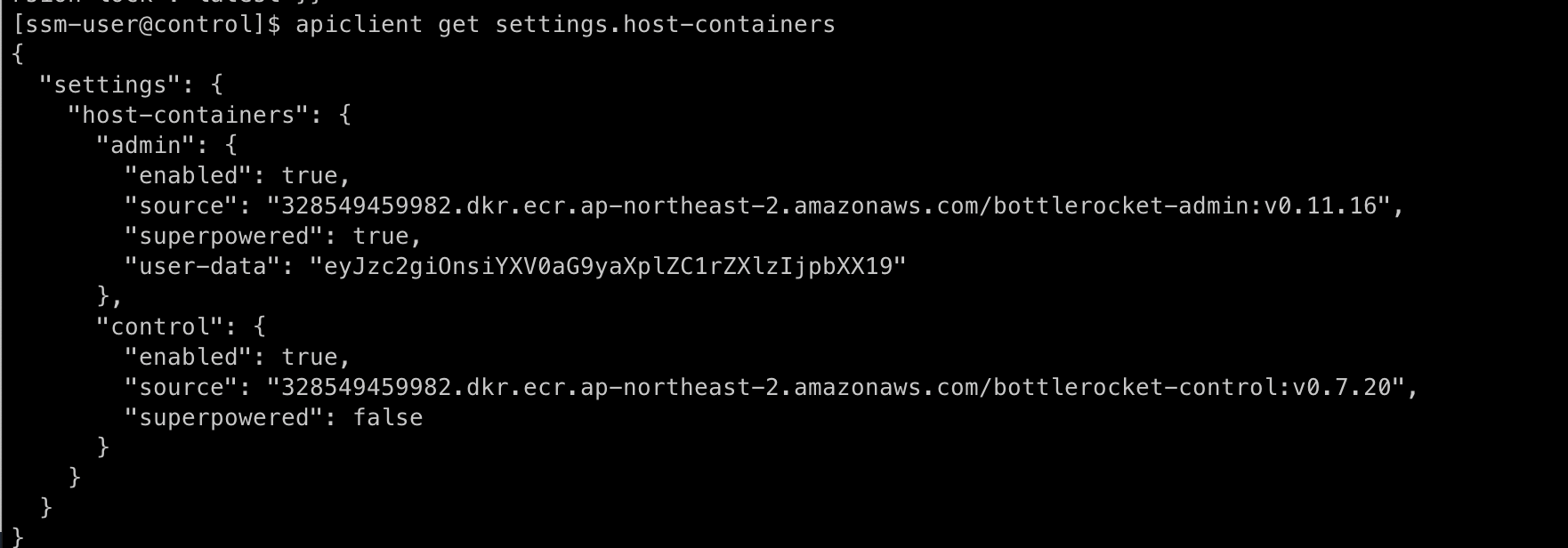 일단 우리가 처음 접속하면 Bottlerocket의 컨트롤 컨테이너에 접속된다.