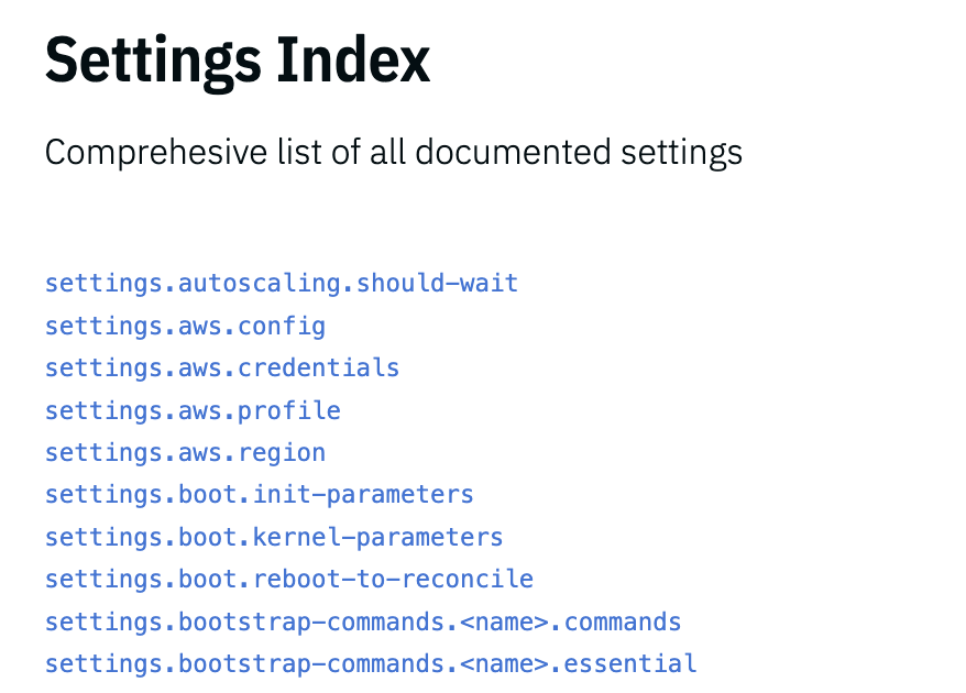 일단 bottlerocket에서 설정할 수 있는 정---말로 많은 내용이 있으므로 반드시 여기를 참고하기 바란다.