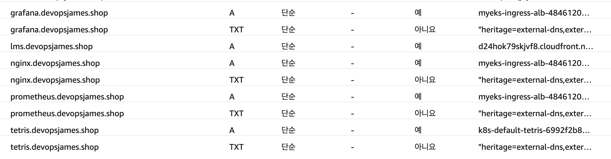 기본적으로 config에서 DNS 설정까지 완료되었으므로 제대로 배포되었다면 다음과 같이 모두 있어야한다.