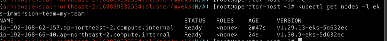 kubectl get nodes -l eks-immersion-team=my-team
