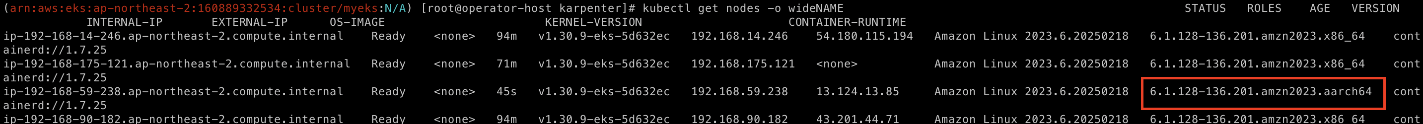실제로 아키텍처를 확인해보자. kernel-version이 aarch64면 graviton노드 이다. 여기서 확인할 수 있었다.