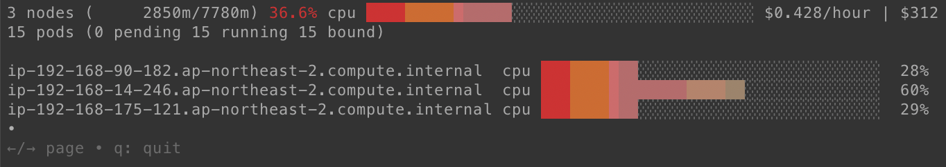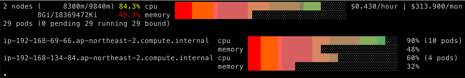 이제 파드 8개를 배포해 새 노드를 만들어보겠습니다.